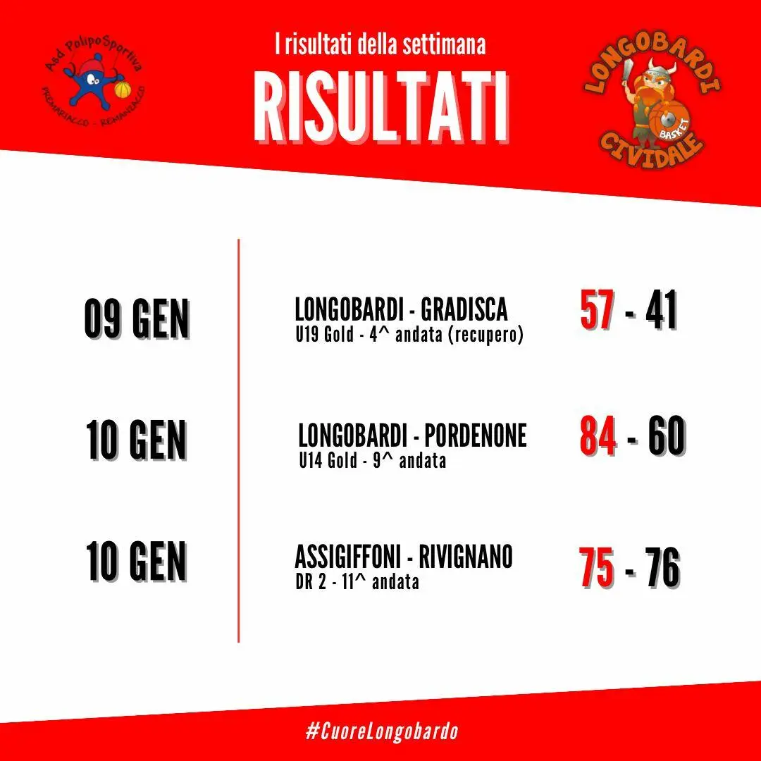 I longobardi guidati da coach Tiziano Lorenzon e dalla sua vice Arianna Cortolezzis vincono contro il Nuovo Basket 2000 nella nona giornata di campionato, per 84-60 (23-11, 26-6, 18-27, 17-16). Tabellini: Predan 12, Bulfoni 5, Pettarini, Lisetto 2, Macor n.e., Zorzutto 8, Miguel n.e., Piccoli 2, Sartori, Gobbo, Terpich 26, Poboni 29.