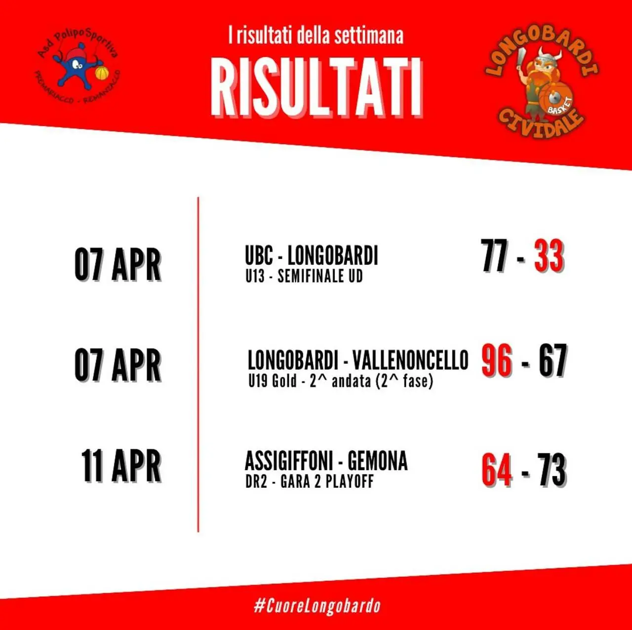I longobardi, guidati da coach Tiziano Lorenzon e dalla sua vice Arianna Cortolezzis, vincono contro il Sacile Basket nella ventiduesima giornata di campionato per 77-107 (16-24, 15-23, 16-33, 30-27). Tabellini: Predan 14, Bulfoni 8, Pettarin , Lisetto 8, Macor 8, Miguel Abdala , Zorzutto 13, Piccoli, Sartori, Terpich 31, Poboni 25.