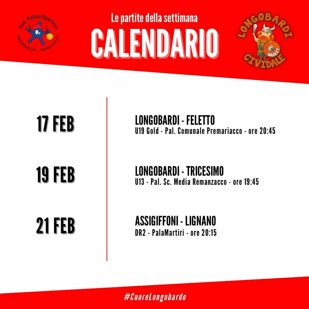 Gli Aquilotti dei Longobardi B scenderanno in campo martedì 18 febbraio alle 17:30 contro Rivignano presso il PalaMartiri a Cividale del Friuli.