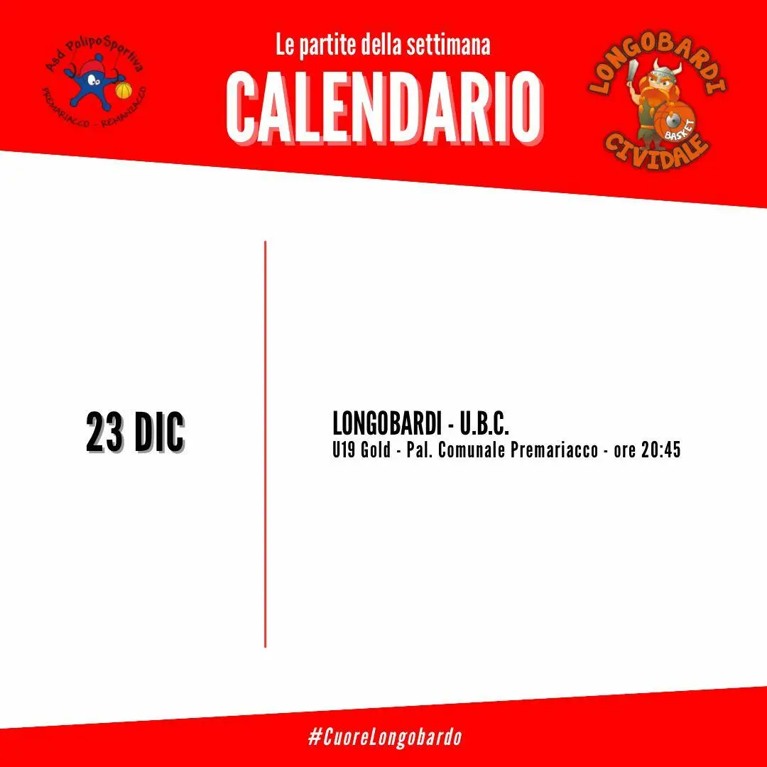 La formazione targata IDR Imago e Cristiam Zorzutto Srl guidata da coach Marco Milan e dal vice Lorenzo Mocchiutti giocherà la nona giornata di campionato, lunedì 23 dicembre alle 20:45, contro l'U.B.C. presso il palazzetto comunale di Premariacco.