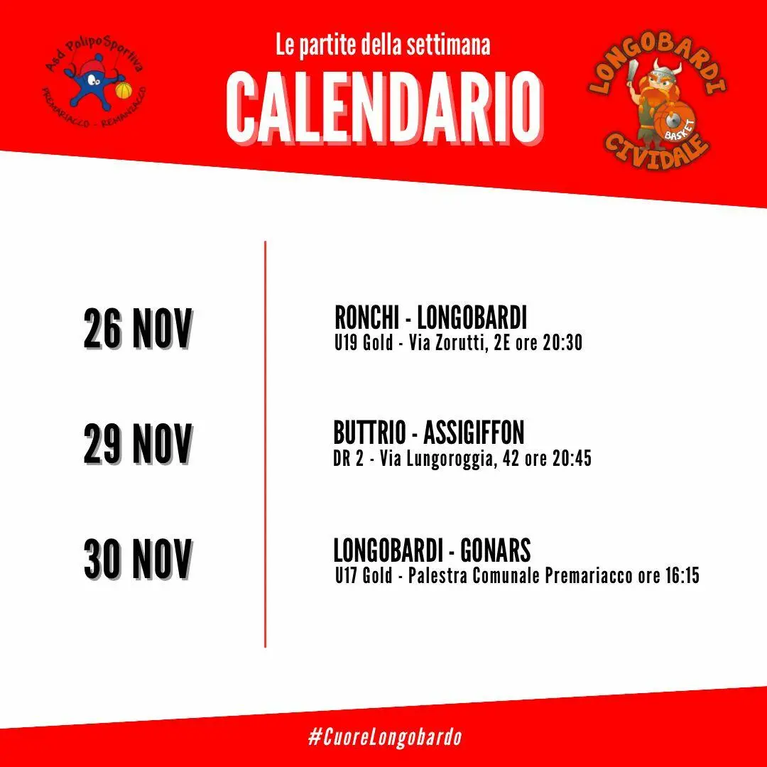 La compagine longobarda, che gioca sotto il nome della UEB Academy di coach Giacomo Genero e del vice Luca Vogrig, tornerà in campo sabato 30 novembre alle 16:15 contro il Libertas Gonars presso la Palestra comunale di Premariacco.