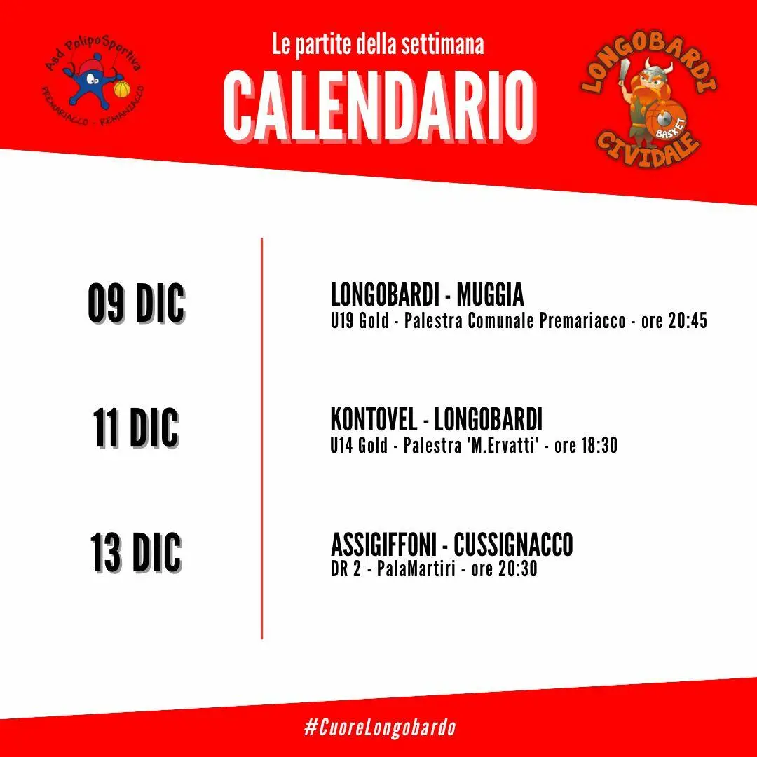 La compagine longobarda, che gioca sotto il nome della UEB Academy di coach Giacomo Genero e del vice Luca Vogrig, tornerà in campo sabato 14 dicembre alle 18:30 contro Codroipo presso il palazzetto dello Sport di Codroipo.